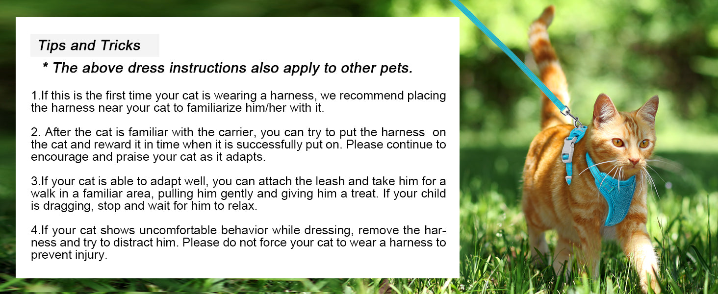 🐾Night-Safe Reflective Strips: Make nighttime strolls worry-free! Reflective trim ensures visibility.The sturdy metal leash clip anchors the cat leash securely, giving your kitty freedom to explore without risks