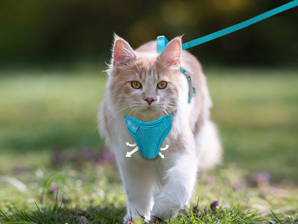 This ultra-light, padded mesh harness is designed with maximum breathability and a feather-light feel. Soft on your cat’s skin, it ensures unmatched comfort and flexibility during walks or playtime.