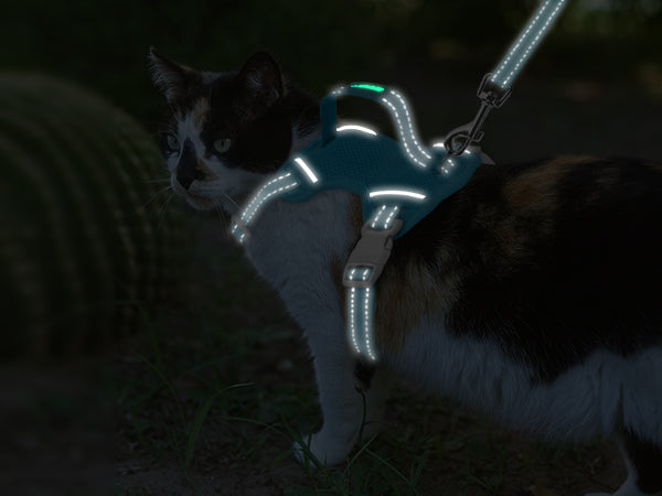 Reflective-strip harness boosts visibility for dawn/dusk walks and nighttime safety. Keeps cats visible in low light while maintaining comfort, ensuring secure adventures day and night.
