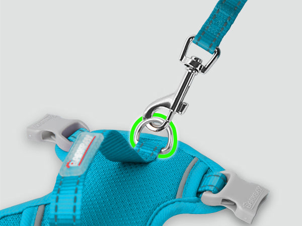 The durable top D-ring provides a secure, easy leash attachment for walks and outdoor adventures.