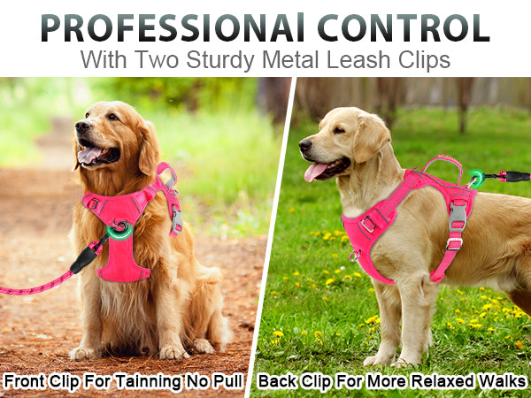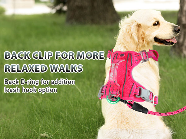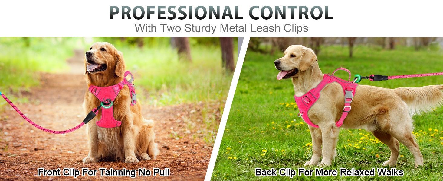 **No-Pull Design**: Front leading halt ring for better control, helping train your dog to heel and stop pulling.D-ring on the back for more relaxed walks.