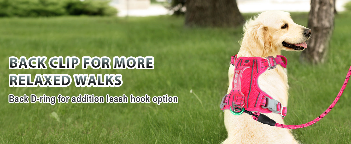 No pull front leading ring corrects the dog's pulling instinct by reorienting its pull to the side, And D-ring on the back for more relaxed walks. Gives you a lot more control over them. Great "learn to walk" harness- - Helping the dog learn not to pull.