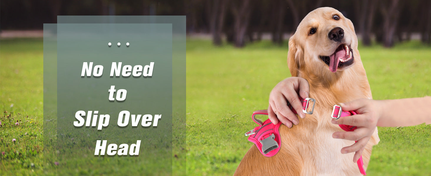 **No-Head-Slip Harness**: Easy to put on and remove without slipping over the dog's head, perfect for skittish or fussy pets.