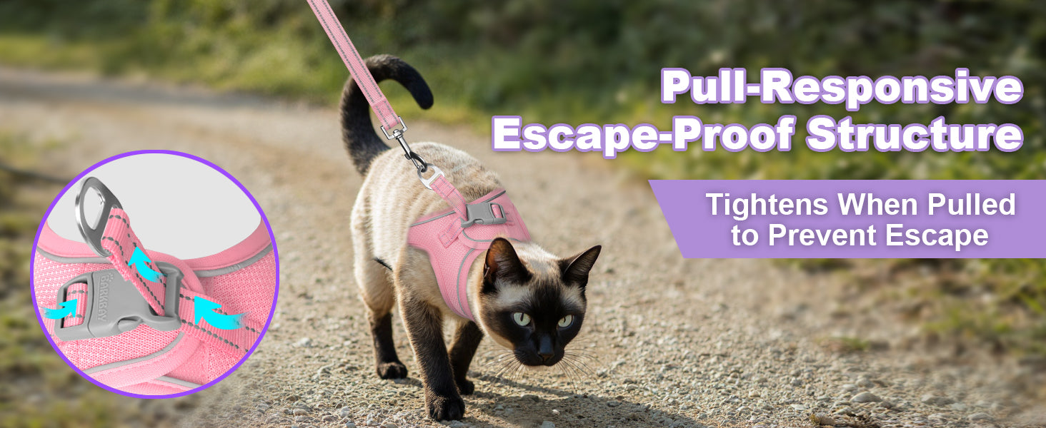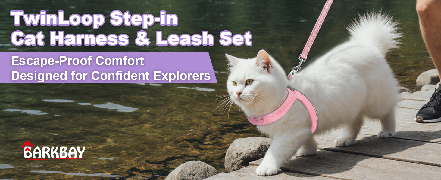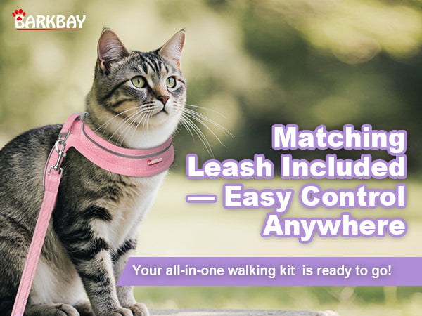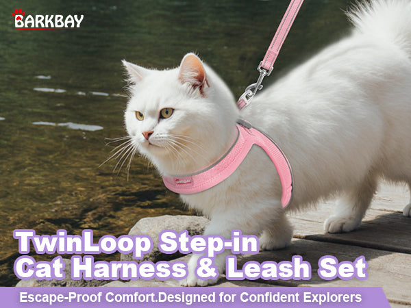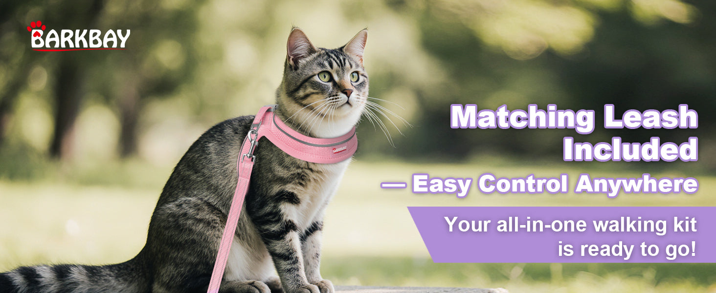 The BARKBAY Cat Harness & Leash Set delivers secure, effortless control for every walk. Its escape-proof design and triple-locking closure stay secure during every curious step. Reflective trim adds low-light safety, while the 360° swivel clip keeps walks smooth and tangle-free.
