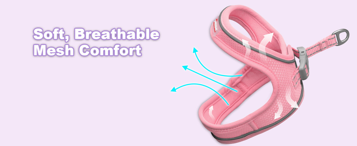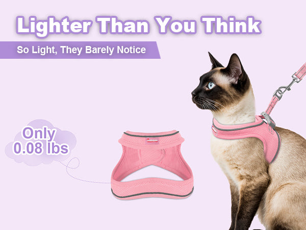 【Soft & Lightweight for Easy Movement】Made from soft, breathable air mesh (only 0.08 lbs) that keeps your cat comfortable all year. Flexible and feather-light, it lets kittens and cats move, stretch, and explore freely during walks, playtime, or travel.