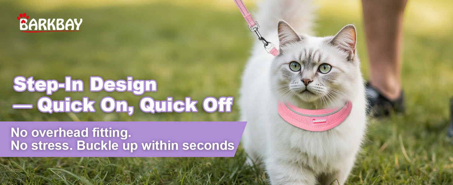 Give your cat the freedom to explore safely. The TwinLoop dual-ring step-in structure delivers unmatched escape resistance, cloud-soft comfort, and stress-free fitting—all in one ultra-light design perfect for kittens and adult cats.A wrap-around step-in structure ensure a snug, escape-resistant fit