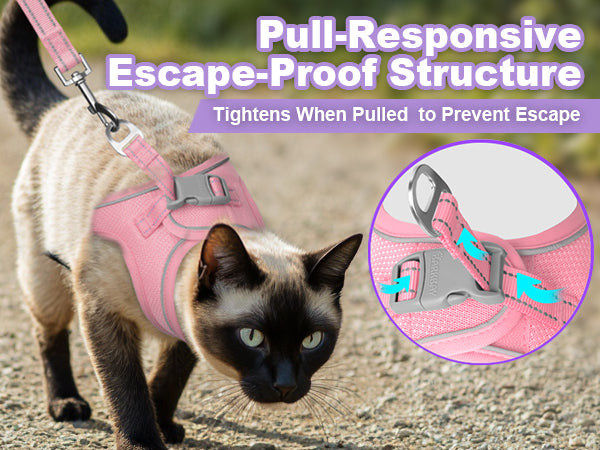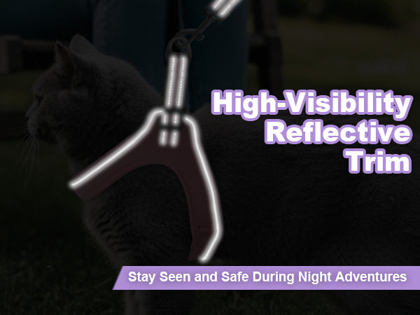 【3-Layer Safety & Reflective Design】Keep your cat safe and confidently under control on every outing with a harness that features three layers of security. 360° reflective trim enhances visibility in low-light conditions, making early-morning or nighttime walks safer, and adjustable straps ensure a snug, comfortable fit.